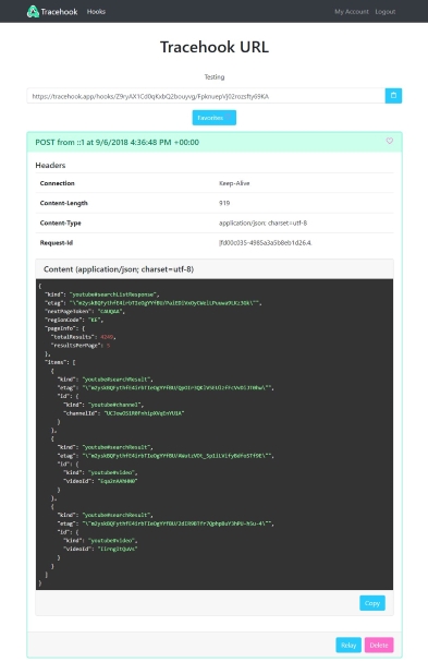 Tracehook will make it dead simple to view your data and act on it. Get going in less than a minute by signing up and pasting your URL into any service.